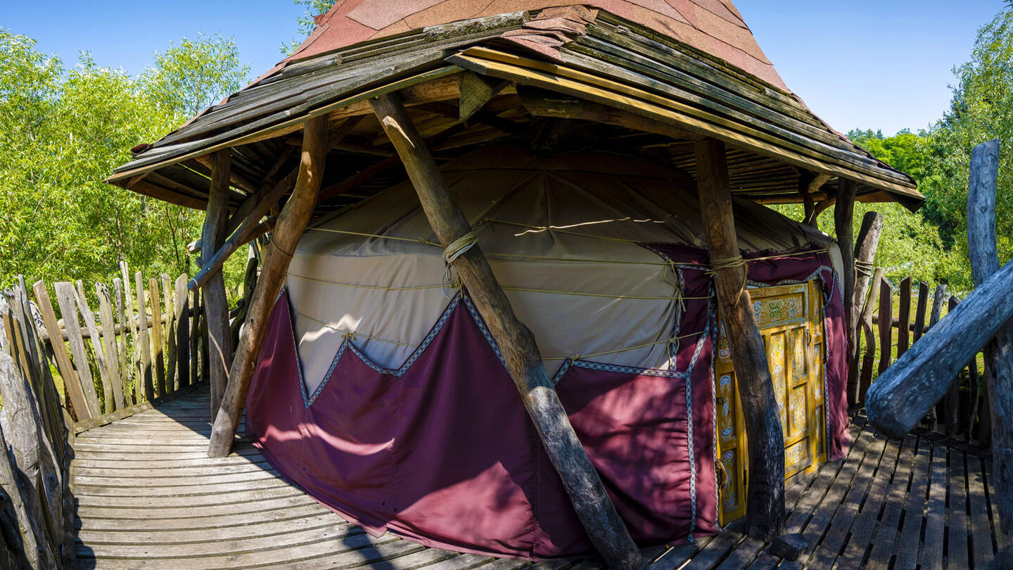 Als die prächtigste unter den Felsenschlafstätten thront das Felsennest über der Grüngeringelten Abenteuerwildnis und gibt den Blick auf fast den ganzen Park frei.