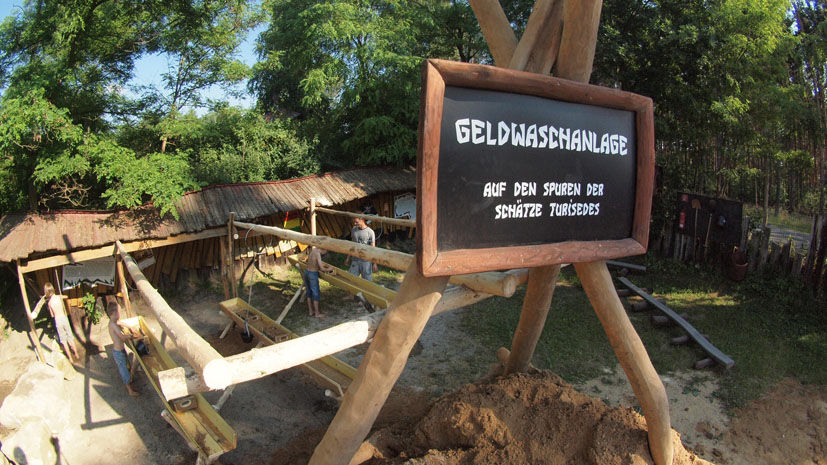Mittels Schaufeln, Sieben und vor allem viel, viel Wasser können alle Abenteuerlustigen auf Schatzsuche gehen. Bei der beschriebenen Münzenmenge sind entsprechende Funde garantiert. Als Entlohnung für die harte Geldwäschearbeit können die "Ehrlichen Finder" ihre Schätze selbstverständlich mit nach Hause nehmen!