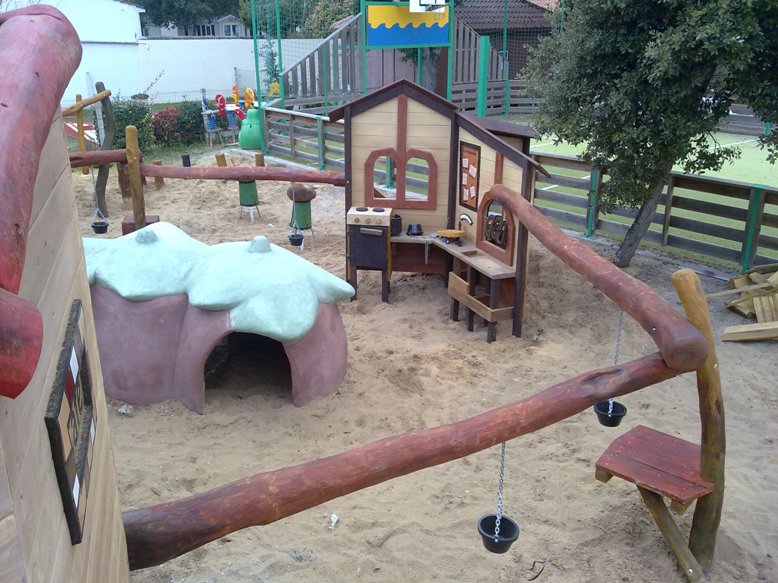 Kreatywny bajkowy krajobraz.....Gród rabusiów, zaczarowany las, bajkowy zamek z bramami, dzięki którym dostęp do zamku mają większe dzieci, jak również konie i powozy, tor przeszkód, na którym można się wspinać, wisieć i czołgać.