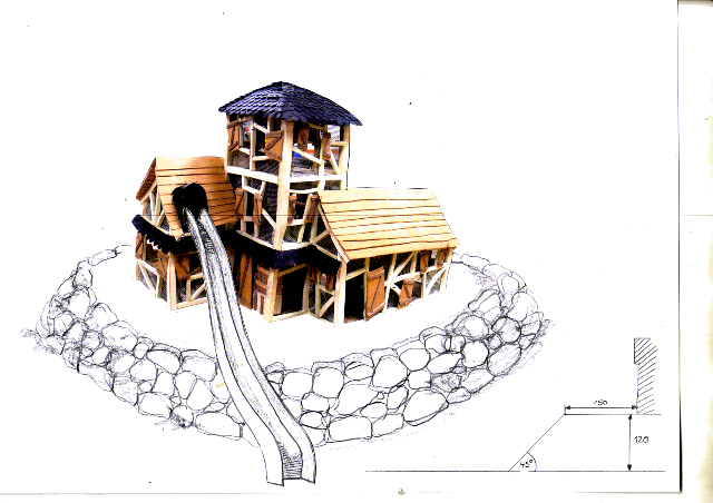 W tym miejscu powstało miejsce zabaw na wzgórzu o wyraźnym średniowiecznym charakterze.