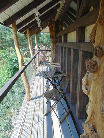 (Prosimy pamiętać, że woda w domkach na drzewie musi być wyłączona w miesiącach zimowych, ponieważ rury mogą zamarznąć z powodu mrozu. Toalety i prysznice znajdują się wtedy w ziemiance, zaledwie ok. 20 metrów od hotelu z domkami na drzewie).